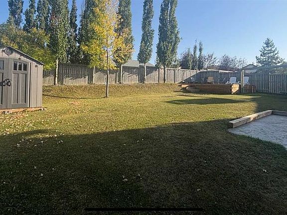 Fine Family Home in Fox Run with 5 bedrooms and 4 baths! This home on a nice Crescent is sure to please! Enjoy a beverage on the large front veranda or invite your family and friends to a summertime BBQ in the huge back yard which is very private! Step inside and you are greeted with a cozy living room with a gas fireplace. Great Kitchen with spacious cabinets, corner pantry, eating bar and a patio door to a small deck perfect for the BBQ. Main floor laundry and a 2 piece bath right off the garage entry is very functional! Loads of built in shelving in the garage for all your storage needs. Upstairs you will find a large primary bedroom with a 4 pc ensuite, 2 more nice sized bedrooms and another 4 pc bath. All bathrooms are tiled with underfloor heat! Enjoy the "chill" of the central air conditioning on those hot summer days! The family room down is perfect for entertaining and you will also find 2 more bedrooms and another bath! This plumber built home also features on demand hot water system, high efficiency furnace, and in floor heat in the basement. Upgrades include a newer fridge and stove, hot water system and the shingles were done about 3 years ago. A few extras to off the list with 2 sheds, parking pad, play structure, trampoline and a central vac.
