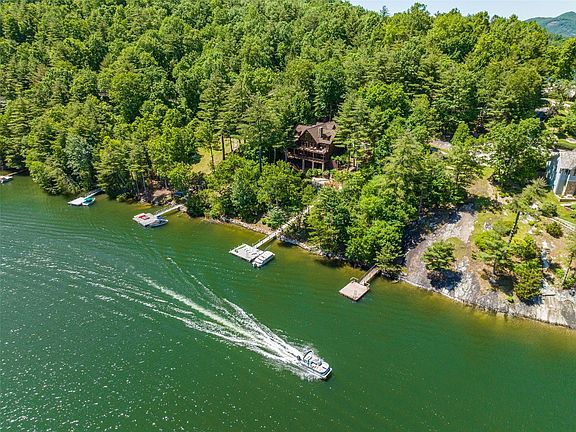 Discover this stunning and furnished lakefront log home nestled within the prestigious gated, with security camera, community of Stone Point. As you arrive, you'll be welcomed by a spacious porte-cochere, perfect for convenient parking. The meticulously maintained landscaping around the property reflects the owners' love and care. Step inside to experience the inviting warmth of the main floor living room, highlighted by floor-to-ceiling windows that flood the space with natural light and offer breathtaking lake views. The open floor plan seamlessly connects the living room to the dining area and a generously sized kitchen, ideal for the family chef. Adjacent to the kitchen is a cozy screened-in porch featuring a wood-burning fireplace, leading to an open deck that extends to the primary bedroom, conveniently located on the main level. An additional bedroom is also found on this floor, with a loft space above it, offering more bonus living area and a full bath. Downstairs, you'll find even more living space, complete with another fireplace and a pool table. This level includes a third bedroom with an ensuite bathroom, as well as two bonus rooms currently used as an office and a workshop. Outside, an expansive deck from the main level descends towards the lake. As you make your way to your private boat dock, you'll pass an impressive rock-lined fire pit area, providing ample room for family and guests to gather and enjoy the serene surroundings. This home combines luxury, comfort, with fiber optic high speed internet, and the beauty of lakeside living. Video tour of home, https://www.youtube.com/watch?v=IbwbEpGGc78 3D Tour https://my.matterport.com/show/?m=1boYpyNH2QT