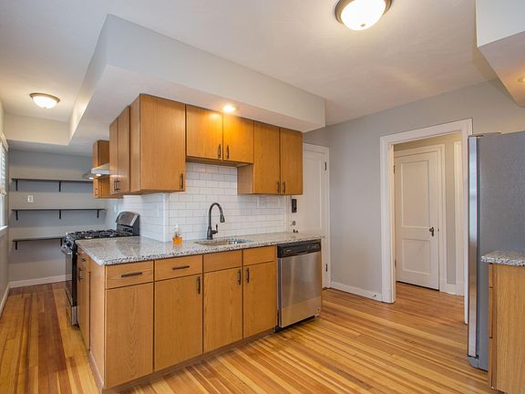 Newly Renovated! Granite Countertops & Stainless Steel Kitchen! 3 Bedrooms with 8 closets! First floor unit! AC! Private Garage! This fully remodeled apartment features a beautiful kitchen with all new stainless-steel appliances. Gleaming hardwood floors carry you between the 3 bedrooms. Live comfortably with 8 closets and tons of natural light 22 windows with high-end blinds. Enjoy conveniences like a new Nest thermostat and key pad locks. Landlord provides 4 AC units for your comfort. The unit features an oversized 16' x 14' living room and separate dining room. Includes 1 garage space and 2 driveway spaces take the pain out of parking and city living. This unit has a covered entrance, spacious back deck and a yard to enjoy in the warmer months. Minutes from Blue Back Square! Pet friendly! We manage lawn care and snow removal FOR YOU. Water, sewer and trash are included in the rent.