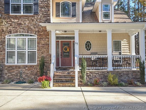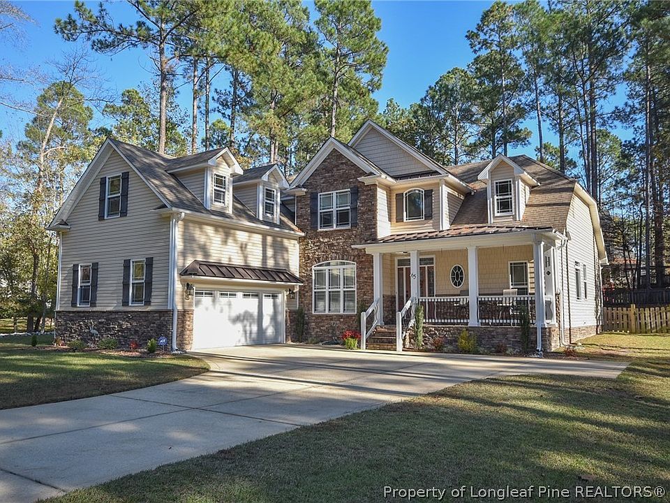 Harnett Co. gated community of Carolina Lakes! This 2 story home & side entry garage is calling your family’s name w/ front porch views of Ski Lake. Foyer featuring cathedral ceilings, hardwood floors, vaulted ceilings in great room w/ corner gas fireplace and wall of windows providing natural light. Tiled kitchen w/ double ovens, electric range top & sink overlooking morning room, built-in desk space, eating space and separate formal dining room. Master suite and 2nd bedroom w/ full bath on the main level! Master suite features trey ceiling. Mstr bath hosts a garden tub, walk-in tiled shower, double sinks and walk-in closet. Upstairs you’ll find the 3rd and 4th bedrooms w/ jack & jill bathroom. Spacious bonus room above the garage w/ dormer windows & storage space. Head out back to the screened in porch & stamped concrete patio w/ fully fenced backyard! Privacy being in the rear of the neighborhood. Walkable lake access point just steps out the front door.
