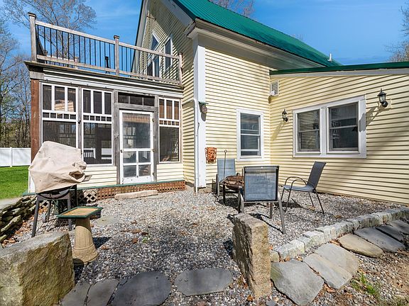 Beautiful Dayton country setting on 4.5 acres...large, front yard. Unique home with cathedral & barrel vaulted ceiling, wood floors, first floor bedroom, bathroom w/ large tile shower is handicap accessible, DR w/ Jotul propane stove, LR leading to screen porch overlooking the private back yard. Upstairs is cozy Office/Art area, leading to Loft, Laundry Room, Full Bath and  2 bedrooms, with sliders leading to deck. overlooking private back yard. Side Patio Area. Two car garage with lots of storage above. Also, formerly used ''Honey House'' with  3 separate areas for Workshop, Tractor/Storage and Working area. Access to Swan Pond Brook through the woods at back of property.