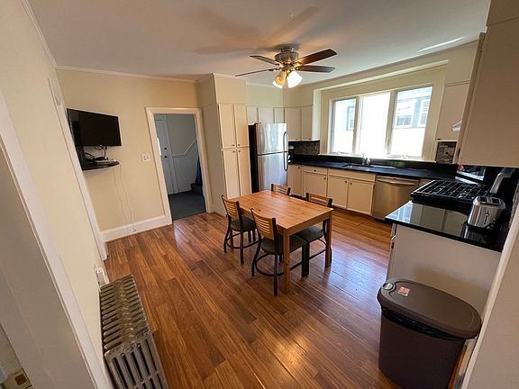 Good-sized 4 bedroom / 1 bathroom apartment with 2 private outdoor spaces (front and back decks) and massive common fenced-in yard, 1 garage parking space, 1 driveway parking space, free common laundry, as well as an updated kitchen on a quiet street in an incredible location in Brighton, located a just half a block away from Western Ave and the brand new Pavement Coffeehouse, and within a 1/4 mile of Charles River Parks, Star Market Grocery Store, Starbucks, and over 10 great restaurants. This apartment is also just a one minute drive to the Soldiers Field Rd on-ramp. This place is perfect for young professionals and graduate students who want proper-sized bedrooms with private outdoor space and parking for an affordable price near public transportation, parks, and bike/walking paths in a quiet building but also near the hustle and bustle of Boston. Available now! Available FURNISHED for additional monthly charge.