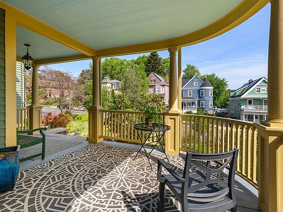 This Victorian gem in Ashmont Hill boasts a rich history and exquisite features. At 3,107 sq ft on 3 floors, it offers ample space w six bedrooms & 3.5 baths allowing for flexible use. The charm extends outdoors with ~ 1,000 sq ft of decks & balconies on 3 floors in 4 separate locations, allowing for picturesque views, sunny, shaded and serene relaxation. The interior showcases the elegance of a bygone era w gorgeous formal living & dining rooms exuding timeless sophistication. Ascend the stairwell to be greeted by a bespoke three-panel stained glass window from 1890. 3rd flr offers integrated au pair suite. Pocket gardens offer bucolic escape amidst lush, mature plantings just .4m to Ashmont T, dining, etc. 2-story free standing carriage house ~500 sq ft on main floor offers insulation, electricity, skylights and loft space—a haven for artists or anyone seeking a creative retreat. Spiral stairs to lower level awaits its own incarnation; easy exit at rear.