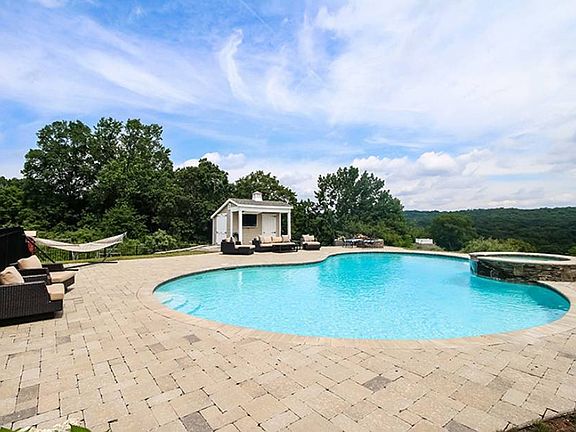 Every day is a gift at this exceptional 5 bedroom/4.5 bath 5200+ sqft home.Sprawling property on an exclusive cul-de-sac rd.Stunning incomparable views overlooks equestrian center.Enjoy beautiful sunrises,fall foliage & 4th of July fireworks from your patio.Custom heated gunite salt water pool w waterfall spa, stacked stone fire pit,pool house w changing rm/storage area,built-in outdoor entertainment system.Enjoy an evening movie or sporting event under the stars. Extensive trim work/open floor plan.Chef's kitchen w Viking appliances,custom cabinetry,granite counters & island w hurricane pendants, 2 dishwashers. Dining area leads to large deck.Study w coffered ceiling.Lower level w media room,pub with wet bar, 500 bottle wine cellar, bedroom & full bath! Paradise!