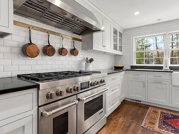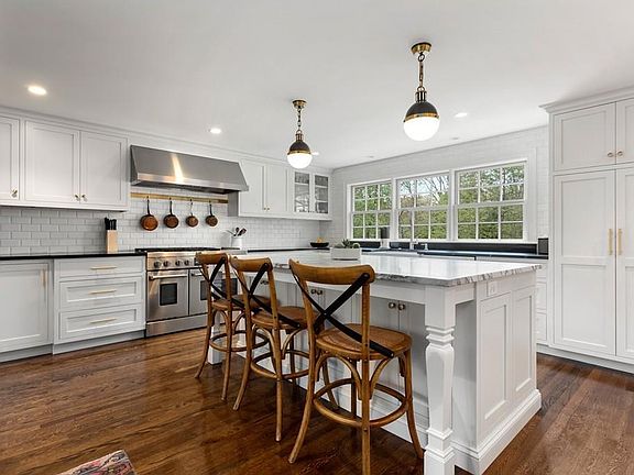 This recent remodel is a marriage of modern amenity and architectural detail. The focal point is a luxurious kitchen with custom cabinetry, oversized marble island, soapstone counters, and Farmers sink. The open concept has formal & informal dining spaces separated by pocket doors, living room complete with gas fireplace, and a vaulted sunroom with heated floors and slider to the patio and landscaped yard. The first floor includes a spacious mudroom, renovated half bath, and office with built ins. An addition over the kitchen has afforded a master suite with vaulted ceilings, his and hers closets, and generous master bathroom with custom cabinets, marble counters, and heated floors. The former master includes en suite bath as well as two additional bedrooms and family bath. The finished basement with full bath makes for a great playroom or rec room. Updates like siding, electrical, windows, roof, HVAC, insulation and more, even the most discerning of buyers is sure to be impressed.