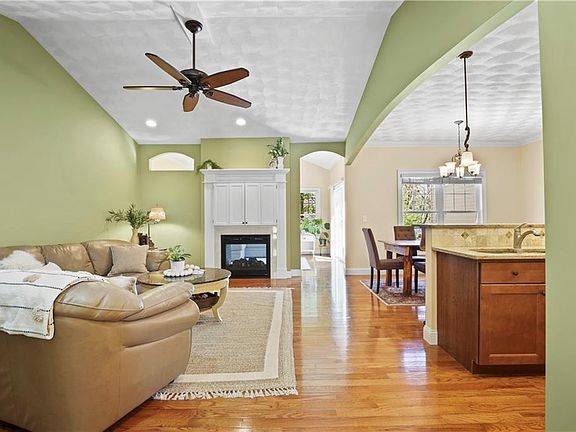 FIRST SHOWINGS AT OPEN HOUSE SATURDAY 4/13 10-11 AM. Custom and upgraded one level-living condo in sought after Deer Brook Estates, a 55+ community. This 2 bedroom, 2 bathroom offers an Open Floor Plan, Cathedral ceilings, an updated kitchen with stainless appliances, granite countertops, and a large center island that is open to the sun-lit dining area. The living room has a beautiful double-sided fireplace that can be enjoyed from both the living room and the sunroom, with a slider leading to a private Trex deck that overlooks a view of the woods. Enjoy your Primary Bedroom and Bath that features double sinks with granite counters, a large walk-in tiled shower, a customized walk-in closet, and radiant heated flooring. The second bedroom is bright and sunny and just steps to the full guest bathroom. Immaculate hardwoods throughout, separate laundry room on main living level, Central A/C, whole house Generator, 2 Car Garage and full Walkout Basement (great for storage or finishing)! Walking trails, septic & community well-monitored, in-ground irrigation. Close to the highway, shopping and beaches, and just 5 miles to Wickford village. Come see all that Deer Brook living has to offer!