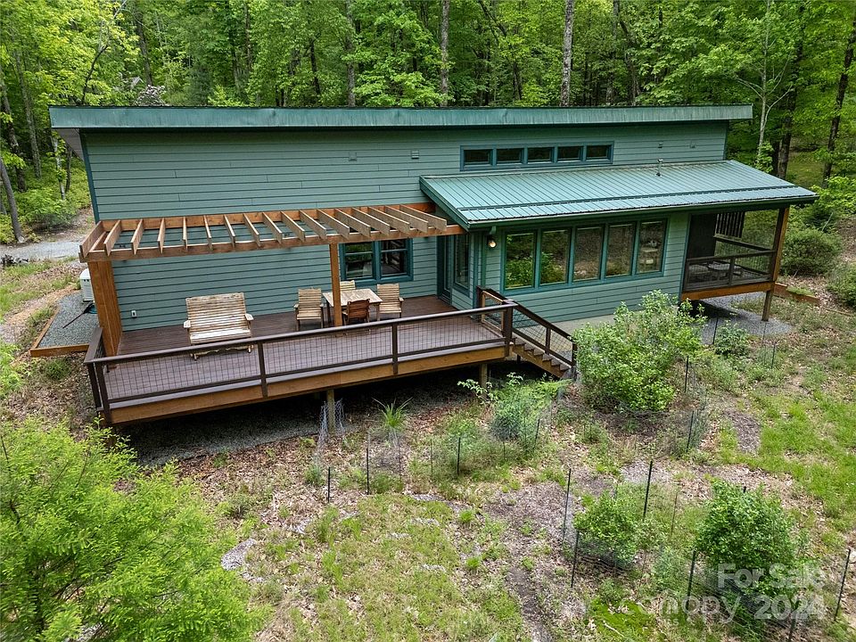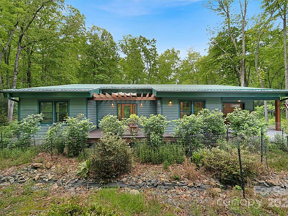 This contemporary craftsman is a nature lovers dream. Located in the highly coveted Sherwood Forest, 10 miles south of Brevard. Custom built in 2017 this 2 bed and 2 bath, 1300+ sq. ft home sits on 1 acre. The level walkway made of Brazilian hardwood leads you to the pergola covered front entry. Open floor plan with large windows, glass doors, a set of clerestory windows and vaulted ceiling fill the living space with light and a sense of oneness with the forest. Kitchen has leathered granite counter tops and Lancaster maple soft close cabinets. Kitchen island has a deep stainless sink , more cabinets and a breakfast bar area. Off the great room is a cozy screened porch and 200sq foot deck of Brazilian hardwood. The split bedroom plan allows for privacy. The primary bedroom looks out onto the screened porch and forest views. the large primary bath offers handicap features. The long hallway leads to 2nd bedroom and bath with washer/dryer area and garage entry. Visit Sherwoodforestnc.com