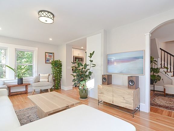 65 Whitman Street combines great recent renovations, stylish finishes, flexible layout and a wonderful location in Weymouth. With so many windows and hardwood floors throughout, sunlight fills the first floor and welcomes you home. The kitchen area opens to the dining room and has granite countertops and a coffee bar with open wooden shelving. The period details in the arched foyer and fireplace make the living room another great place to sit and relax, Three generous sized bedrooms and a very pretty marble, tile and glassed in bath. The finished lower level (walk out with separate entrance) with 3/4 bath provides a fantastic bonus room and could be used a second family room, guest space, office or playroom. 2020 renovations include all systems! You'll love being outside as this home sits back from the street, has a large expansive deck overlooking the private level yard that abuts conservation land. In a great neighborhood near shops, restaurants, and commuter rail in Jackson Square!