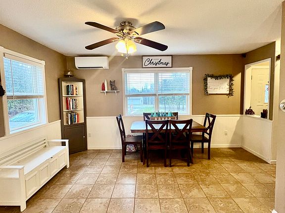 This property also has a large kitchen with all new kitchen appliances The addition of heat pumps provides optimal climate control, offering warmth in winter and refreshing coolness in summer, enhancing the overall comfort of this inviting abode.