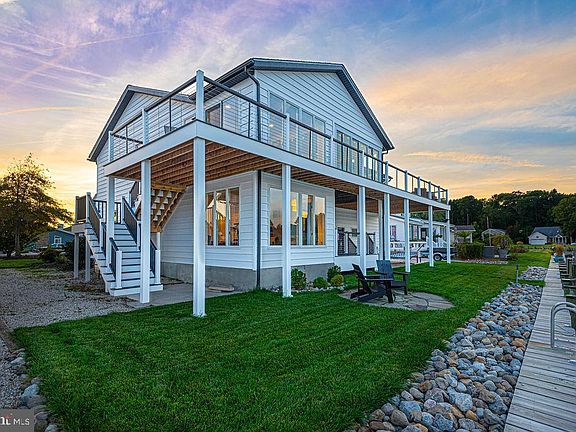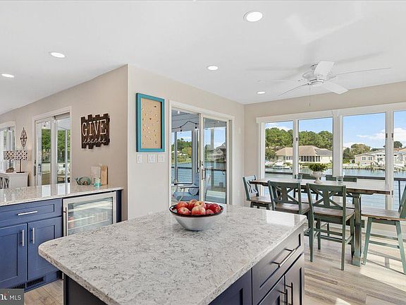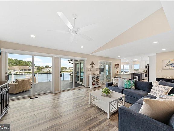 Located on the widest canal in Ocean Pines and offering expansive panoramas, direct open water access, and premier OC skyline views, this fully-furnished, turnkey property provides nearly 3,000 square feet of interior space, plus a screened-in porch, multiple decks, patio, dock and boat lift. Since 2020, the entire property - inside & out - has been completely renovated, redesigned and reconfigured down to the studs with the most discerning eye and attention to detail. From landscaping to decking, from siding to major systems to boat lift, from kitchen, baths, and flooring to plumbing, electrical and waterproofing, no expense was spared in this full renovation. Enjoy the sunrise over Ocean City from the rear deck, screened-in porch, kitchen or upper level family room. An extension of the upper level family room, the rear deck has been expanded and runs the entire length of the home, with composite decking and cable railings so you can enjoy an unobstructed view. Interior upgrades include - upper level reconfigured to maximize water views, full kitchen renovation with Green Forest cabinetry, quartz counters, GE Profile appliances, additional beverage fridge, and expanded pantry, all bathrooms fully renovated, new LVP flooring throughout the main living spaces and primary bed & bath, and new carpeting installed in three bedrooms and on stairs, recessed lighting added, new lighting fixtures installed throughout, and all wiring updated, custom window treatments installed throughout, including heat-blocking, black out roller shades and blinds. Exterior upgrades include - replaced dock stringers and decking, installed a 12.5k lb boat lift with remote, and 4 new pilings installed for lift, full replacement of siding/gutters/porch posts/soffits, 8” plank siding with black shutters, soffits, and gutters, two new exterior doors in back of house, yard sodded, large rocks and stone patio added, paved driveway (previously gravel), updated front landscaping including new irrigation system, new drain on driveway, and two new exterior faucets, replaced and extended both back decks and front porch renovation, all decking replaced with composite, installed irrigation system for grass, updated external lights and post light, replaced glass in front door and side windows, replacement of all screen doors and screens in back porch. Major system updates - Crawl space fully encapsulated and waterproofed, two new HVAC systems installed per FEMA standards, one natural gas and one electric, two new thermostats (Ecobee), an EV charger and new electric panel installed, Ring security system and external cameras installed, solar dock lighting and flag pole with solar light. Enjoy all the amenities of Ocean Pines: an oceanfront beach club with parking on 50th street in Ocean City, a public Yacht Club in Ocean Pines, five pools, two marinas, a premier racquet sports complex, and a Robert Trent Jones Sr.-designed championship golf course.