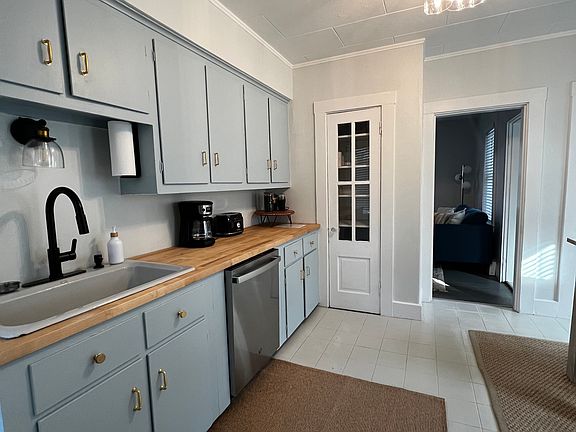 New flooring throughout living spaces! Freshly painted & fully-furnished, this two bed, one bath unit is located on the first level of a duplex. Originally built in 1920, this home's character shines through in the original built-in kitchen cabinets and other architectural details throughout. The main bedroom is complete with a queen bed and large closet, for plenty of storage, while the secondary bedroom has bunk beds, and houses the in-unit laundry. Rent includes utilities. Available for a winter rental- October 1, 2025 - May 31, 2026 only. No option for extension. No pets. No smoking. Parking included (driveway has space for one large vehicle, or two smaller, compact vehicles). Tenant responsible for snow removal; however, landlord will maintain landscaping in fall/spring. $2,000/month, utilities included.