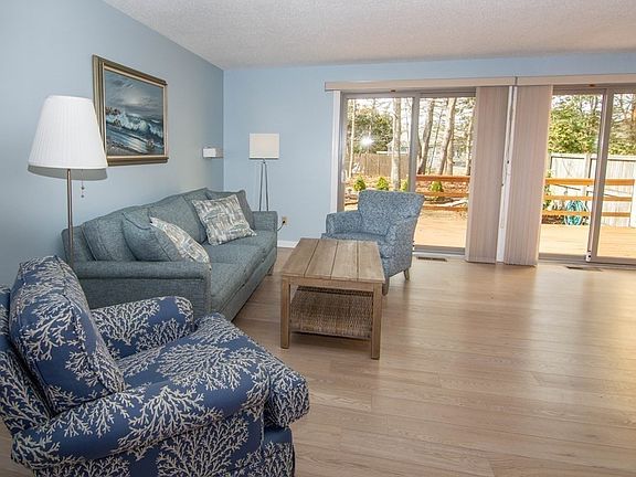 Welcome to Falmouth Port, one of the best run condo developments on the Upper Cape. This unit is striking and will not disappoint you. Enter into a totally renovated first floor with beautiful new floors, an open plan kitchen /dining/living area with breakfast bar, new kitchen, and newer sliders to a large deck. Inside you will love the mellow beach colors and tasteful decor. There is also a den with a wood fireplace and a half bath. Upstairs there are two more guest bedrooms with full bath and a large primary ensuite. This will make a happy gathering place for friends and, or, family. There is room for all! The basement is unfinished with washer and dryer. Use it for storage or design a lower lever for fun space. Falmouth Port has so much for entertainment. Enjoy the salt water pool, walking trails, tennis courts, dinghy docks, newly renovated clubhouse, games field and more. Falmouth Port is a quick drive to beaches, shopping, dining, golf and more... Discover your happy place!