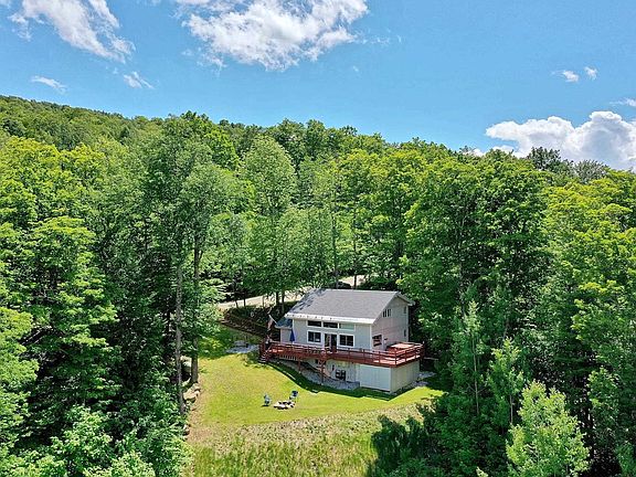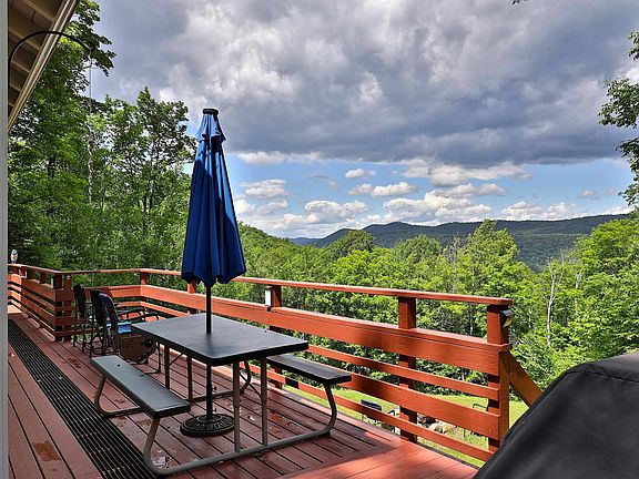 MINUTES TO KILLINGTON, OKEMO OR WOODSTOCK! Soak in the amazing mountain views from this totally renovated open concept contemporary chalet. Being sold beautifully furnished and turn key! Move right in and begin to enjoy this fabulous home. Direct access to snowmobiling, mountain biking, and hiking trails. The home offers a spacious floor plan perfect for entertaining with gorgeous pine floors throughout. Walk in the home to a great mudroom and storage pantry area to an open kitchen, dining and living area with a wall of glass to enjoy the spectacular mountain views. First floor primary bedroom and on the second level there are three guest bedrooms. The lower level was just newly renovated into a recreation/ bunk room. Great wraparound deck with hot tub. Covered storage area to house your snowmobiles and other toys. New roof and foam insulation was blown in last few years. You must see this wonderful retreat in the heart of ski and snowmobile country! Strong rental history! Perfect short term rental investment. Act fast on this sweet mountain vacation retreat!