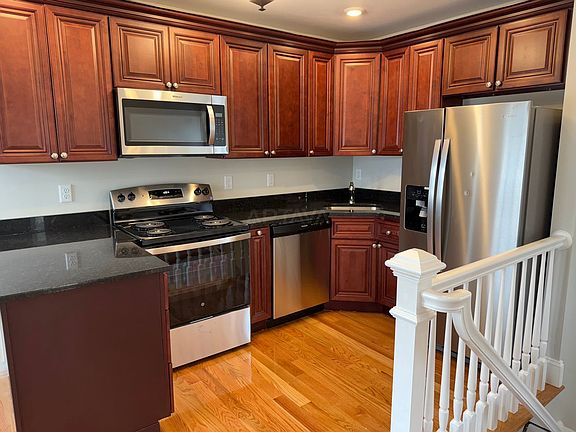 Features of note include hardwood floors, a living room and a modern bath. Cats and dogs are allowed. The modern eat-in kitchen includes dishwasher, electric range, microwave, granite countertops and stainless steel appliances. Cost of rent includes municipal water. Includes in-building laundry. Available Now.