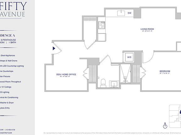 Step into a bright, open one-bedroom with a home office, where floor-to-ceiling windows facing north fill the space with soft, natural light, accentuating up to 13-foot ceilings and sleek stone and wood flooring. The gourmet kitchen dazzles with stainless steel appliances, including an electric cooktop and wall oven, smooth Silestone countertops, and custom cabinets with LED lighting. The spa-inspired bathroom, featuring premium Kohler fixtures, invites serenity. Modern conveniences elevate your lifestyle, including an in-unit washer/dryer, individual central air conditioning, keyless entry, and energy-efficient LED lighting, with a dedicated office space designed for productivity.
