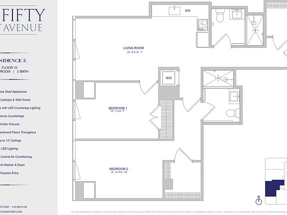 Step into a spacious two-bedroom apartment where floor-to-ceiling windows facing South bathe the open layout in soft, natural light, accentuating up to 13-foot ceilings and elegant stone and wood flooring. The gourmet kitchen dazzles with stainless steel appliances, including an electric cooktop and wall oven, sleek Silestone countertops, and custom cabinets illuminated by LED lighting. The spa-inspired bathroom, featuring premium Kohler fixtures, exudes tranquility. Everyday luxury shines through with an in-unit washer/dryer, individual central air conditioning, keyless entry, and energy-efficient LED lighting, perfect for a comfortable and stylish lifestyle.