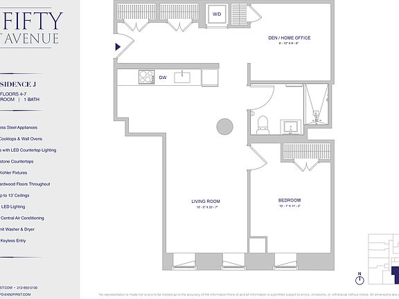 Step into a bright, open one-bedroom with a home office, where floor-to-ceiling windows facing South fill the space with soft, natural light, accentuating up to 13-foot ceilings and sleek stone and wood flooring. The gourmet kitchen dazzles with stainless steel appliances, including an electric cooktop and wall oven, smooth Silestone countertops, and custom cabinets with LED lighting. The spa-inspired bathroom, featuring premium Kohler fixtures, invites serenity. Modern conveniences elevate your lifestyle, including an in-unit washer/dryer, individual central air conditioning, keyless entry, and energy-efficient LED lighting, with a dedicated office space designed for productivity.