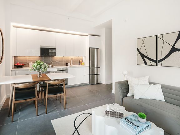 Discover luxury at 650 First Avenue, a sleek new high-rise at E 38th St and 1st Ave in Manhattan's vibrant East Side. This modern studio apartment offers up to 13' ceilings, stone and wood flooring, and large windows for luminous West facing exposure. The gourmet kitchen features stainless steel appliances, electric cooktop and wall oven, Silestone countertops, and LED-lit cabinets. Enjoy a spa-like bathroom with Kohler fixtures, an in-unit washer/dryer, central AC, keyless entry, and LED lighting.