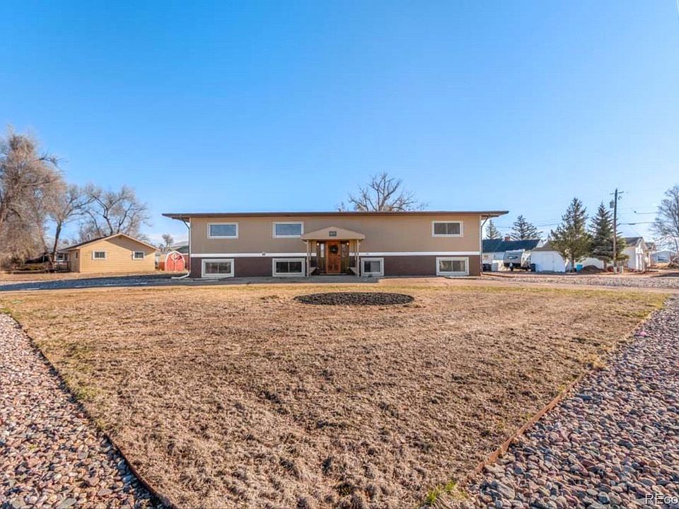 This home has a "WOW" factor from the moment you pull up! Interior features include 5 bedrooms, 3 bathrooms, and an abundance of upgrades including new carpet, paint, light fixtures, furnace, and more. Upstairs you'll find an open floorplan with kitchen and living room space, 3 bedrooms, and access to an exterior deck. The kitchen is large with plenty of cabinets and counter space. The master bedroom features a walk-in closet. Check out the lower level which features a huge family room, 2 bedrooms, and 2 bathrooms. The large private backyard with new fence will be yours to enjoy all year long. The location can't be beat - this home is on a corner lot and is only 1 block from the baseball field, a few blocks to the restaurant and market, and just 30 minutes to Fort Collins.