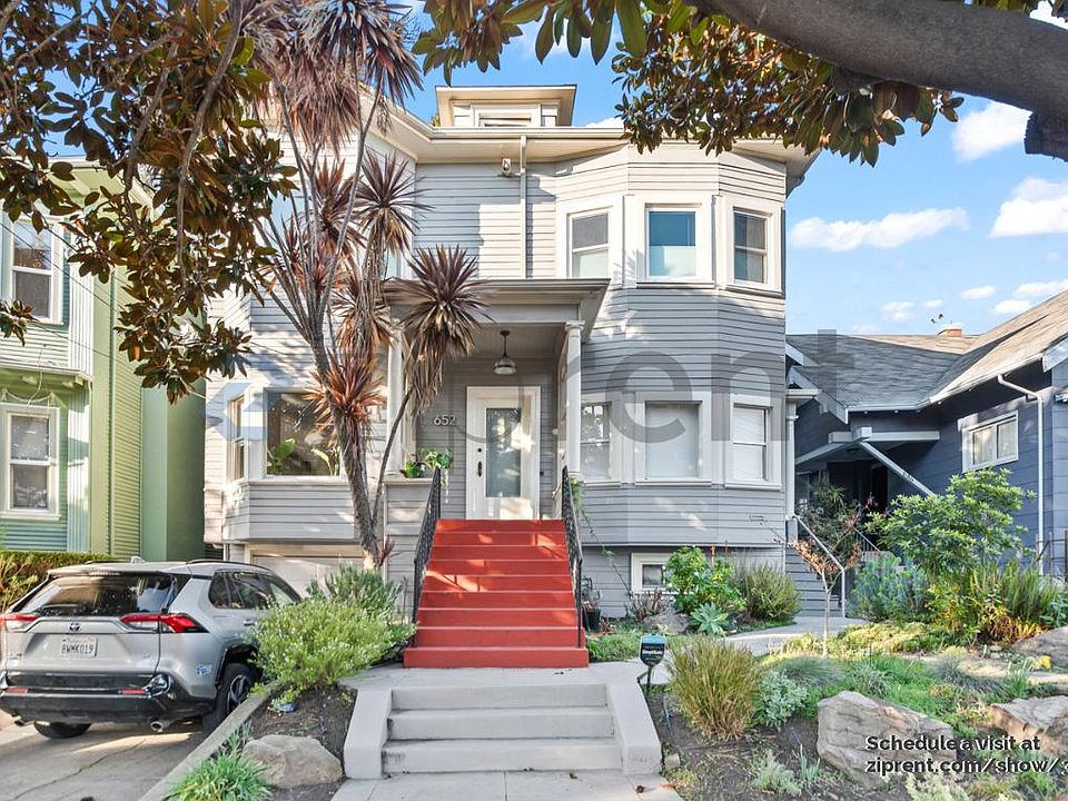 This property is available. Please inquire on this site to schedule a showing. Nestled amidst the lush greenery of redwoods and a bamboo grove, this stunning Edwardian home at 650 54th Street, Oakland, CA, offers a serene retreat for design enthusiasts. The exterior exudes classic charm with its elegant architecture and inviting red steps leading to a welcoming porch. Inside, the home is a blend of timeless elegance and modern updates, featuring soaring ceilings and an abundance of natural light streaming through large windows, creating a bright and airy atmosphere. The recently renovated kitchen is a chef's delight, boasting sleek white cabinetry, stainless steel appliances, and a spacious island perfect for entertaining. The interior spaces are thoughtfully designed to enhance comfort and style. The open-concept living and dining areas are adorned with original details, providing a perfect setting for gatherings or quiet evenings. The bedrooms offer tranquil retreats with views of the surrounding greenery, ensuring a peaceful ambiance. The bathrooms have been tastefully updated with modern fixtures and finishes, complementing the home's classic character. Outside, the shared backyard is a serene oasis, ideal for relaxation or entertaining, with its lush plantings and cozy seating areas. This home is a haven for those seeking beauty, comfort, and a connection to nature, all within the vibrant community of Oakland. This home also features solar panels which keeps the utility bill low! With 2 bonus rooms which can be used as an office or nursery! And this is a pet-friendly property. The tenant is responsible for electricity and gas. Water and trash are included in the rent. Available: 03/01/2025 Heating: ForcedAir Cooling: Wall Appliances: Refrigerator, Range Oven, Dishwasher Laundry: In Unit Parking: Detached Garage, 2 spaces Pets: Dogs Allowed, Cats Allowed Security deposit: $4,650.00 Included Utilities: Water, Garbage, Landscaping, Sewage Additional Deposit/Pet: $500.00 Disclaimer: Ziprent is acting as the agent for the owner. Information Deemed Reliable but not Guaranteed. All information should be independently verified by renter.