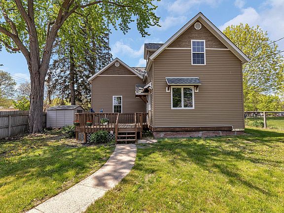 This well cared for classic home has curb appeal and is full of character. Its a 1 1/2 story with 2 Bedrooms and 2 Bathrooms, Hardwood Floors, a main floor 1/2 bath, bright kitchen with shared dining. The home also has a separate dining area for more formal occasions. The living room provides a nice area to relax and entertain. The upstairs has a large primary bedroom with a sitting area directly adjacent to it along with the second bedroom. The upstairs also has a full bathroom for convenience. The front porch has room to sit and enjoy some quiet time with your favorite beverage. The backyard has a deck and fenced in area along with an area for grilling. The large 24 X 16 detached one stall garage has a loft and space for storage. Newer Roof and Siding add to its updated look. The location makes it convenient with a nearby park to shopping and restaurants. ***Open House Saturday May 18th from 10:00-11:30.