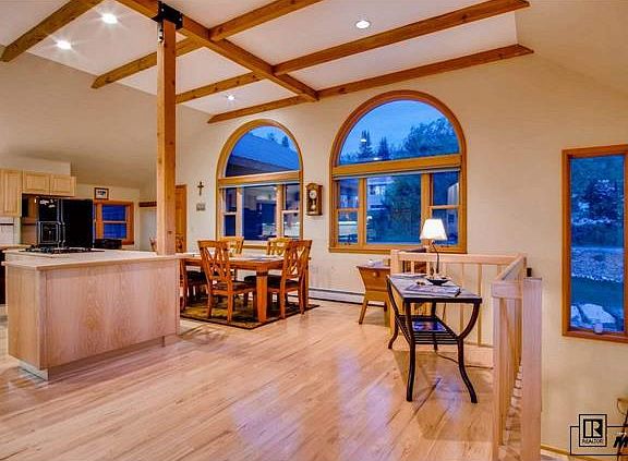 Well-maintained custom built 3+BD/3BA single family home near the Steamboat Springs High School, Downtown Steamboat, and the beautiful Spring Creek Trail. Located on a wooded 0.3 acre lot with the soothing sounds a Spring Creek flowing by, this home covers nearly 3,104sf with vaulted ceilings and an ideal open floor plan across the living room, dining area, and kitchen. Towering windows offer loads of natural light and capture the views across Emerald Mountain, Sleeping Giant, and Strawberry Park. Watch summer fireworks or fall high school football games. The downstairs layout is perfect for a growing family, with two bedrooms and a spacious master suite. Step out on the adjacent back deck and listen to the creek flow by. The main level office could easily be repurposed as a 4th bedroom. Other features include an oversized 2 car garage and crawl space with 6 ft ceilings. Owners can choose to finish an additional 500 sq feet of living space to add another bedroom or media room.