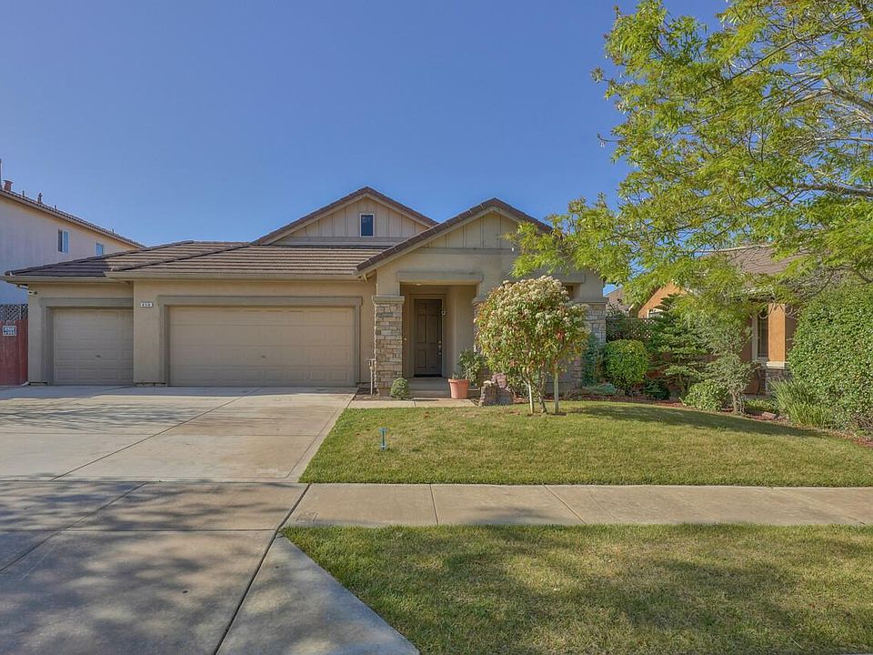 Jewell of the neighborhood! 4 bedroom 2 bath 3 car garage, home sweet home. This amazing home is freshly painted inside, open floorplan, dual pane windows, tons of cabinets. No need to get a refrigerator there is a double door staying, lots of natural light. The backyard stamped concrete easy to maintain, with lots of planter beds for the gardener in your family. This house is fabulous, it is a must see.