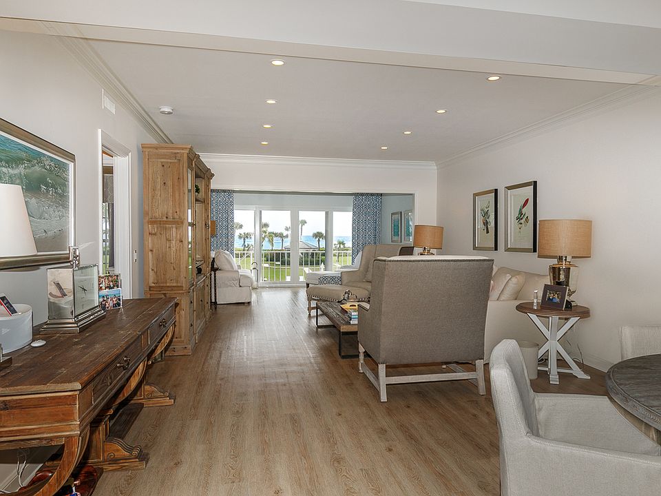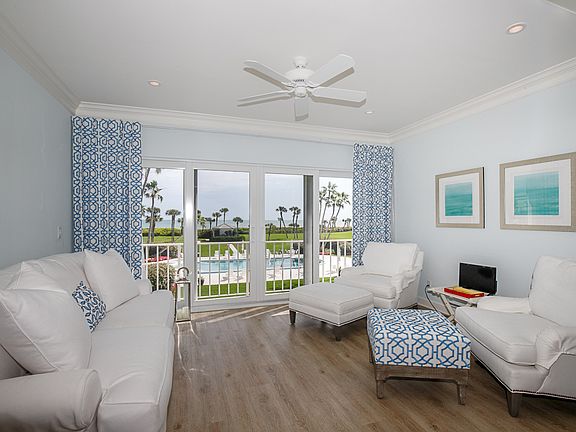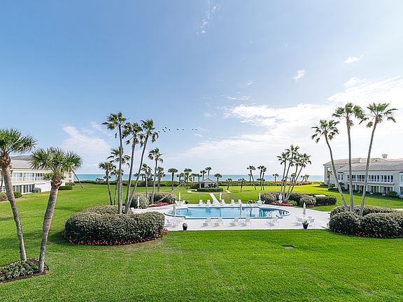 Set back from the ocean overlooking long views of the tropically landscaped pool and ocean beyond is this beautiful 2BR/2BA, direct oceanfront condominium. Indulge in brilliant sunrises and soothing sounds of the ocean lapping at the shore. Boasting 1,590+/- square feet, this residence has bright interiors, expansive living room with dining area adjoining the enclosed lanai. Enjoy easy access to the private pool and beach from your own backyard! Just a short walk to the Beach Club, additional features include a seaside master suite, guest bedroom with full bath, new floors, impact rated windows, washer and dryer, garage parking space and storage.