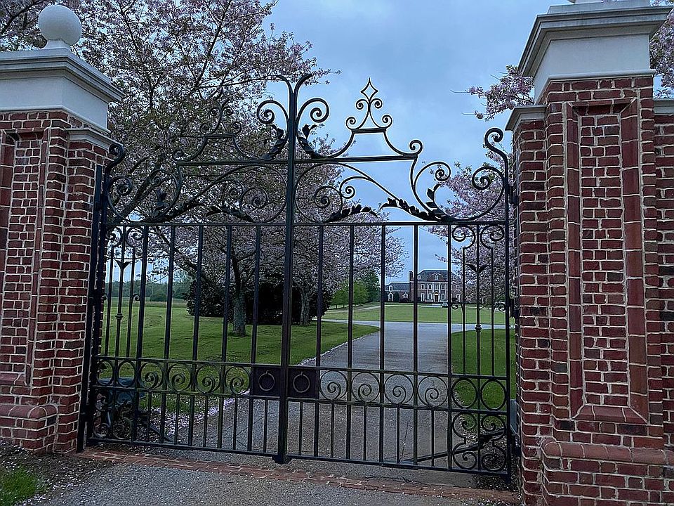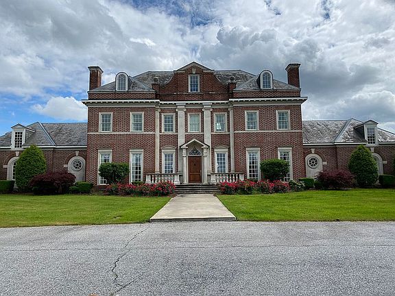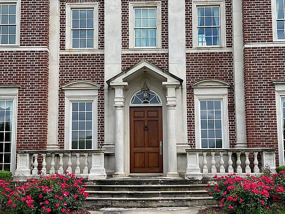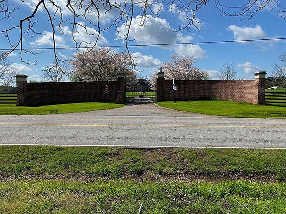 Inspired by the English countryside appearance, architect, William T Baker, drew upon classic Palladian three-part designs with perfect symmetry. Its oversized brick and custom limestone features, including a slate roof, showcase this home, which sits back from the road with a brick and limestone entranceway and 12-foot high wrought iron gate and a 1500-foot oval driveway, creating a Great Lawn framing the front of this estate home. Inside, the home features a rotunda with dual, semi-circular staircases, a custom maple library, entrance gallery, four fireplaces and large kitchen with granite countertops, gas stove, subzero refrigerator and two stainless dishwashers and custom sinks. The home features custom mouldings, wrought iron railing, custom wallpapers and beautiful chandeliers with limestone, heart-of-pinewood and tile flooring. The back veranda overlooks almost 100 acres of rolling countryside with a long vista surrounded by trees.