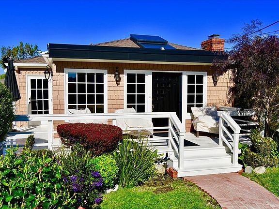 Live like you are on a vacation in this 3-bedroom 2-½-bath turnkey home. Situated near the top of Brooks Street, one of California's famous surfing beaches. Take in Catalina & Pacific Ocean views from the sunset deck. Entertain in the multiple outdoors spaces & beautifully maintained garden. Ocean breezes & sunshine add just the right element to the wrap around deck off the main garden. Natural light illuminates the stainless steel gourmet kitchen, with Viking range, Sub Zero glass door refrigerator & wine cooler fridge. The Master suite has fireplace, vaulted & beamed wood ceilings. Master bath retreat has walk in shower with two shower head locations. A second suite in the rear of the home with gorgeous vaulted ceiling, serene & secluded patio garden, full bath and walk in closet. Third bedroom has natural light and Airy atmosphere. Vaulted wood ceilings, beautiful windows & glass doors. Amazing wood floors though out most of the home. Fully air-conditioned.