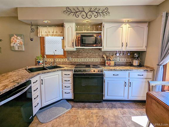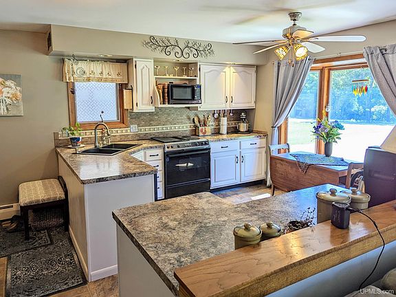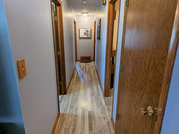 You will love this open floor plan, 3-4 bedrooms, a great rec room, a master bath, workshop and garage in a great location. New flooring throughout! Primary bedroom has a sliding glass door that leads to nice deck with large hot tub! The bay window in the kitchen gives this home a bright and cheery feeling! The lower level features a large non-conforming bedroom, fun bar and plenty of space for entertaining. Newer boiler and an energy efficient tankless water heater provides hot water. Garage and awesome workshop with heat which is wired for 220. Great backyard with firepit for your fun gatherings! No water/sewer fees as you have your own well/septic! Move in ready! Close by is the Iron Ore Heritage Trail.