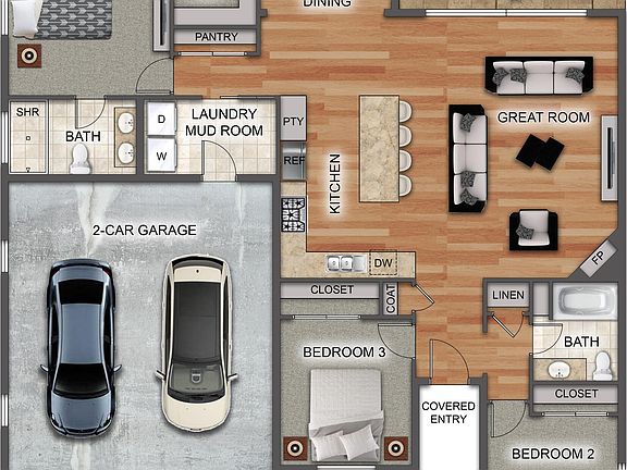 - Attached garage spaces: 2
