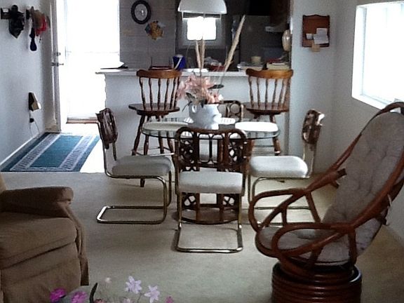 HOA dues include: Water, Sewer, Basic Cable, Garbage Pickup, Use of Pool, Club House, Boat Ramp, Pier and Community Area. Great views with new windows and doors. Hurricane shutters that open and close from inside the home. Fully funished with a sleeper sofa and 4 chairs. Dining room set, 2 bar stools, All Appliances including washer and dryer. Foundation: none
