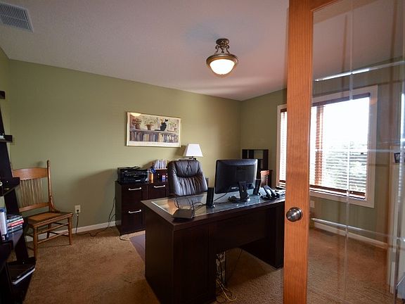 An inviting ranch on a walk out basement in quaint Roanoke Bluffs. Move-in ready with warm colors throughout the house. It sits on a cul-de-sac overlooking a private wooded backyard. As you enter there is an office/den complete with French doors to your right. The Great Room has interesting ceiling lines with a corner gas fireplace and open staircase to lower level. The Dining Area juts out overlooking the beautiful woods. This home is a split bedroom concept. Master en suite has patio doors to the spacious deck once again overlooking the backyard. Dual sinks, garden tub plus larger than normal shower with dual showerheads. Enclosed water closet and large walk-in closet finish the master bath. Walk-out lower level is unfinished just ready for all your ideas. Walk out to the extremely private patio that is under the deck. 3 car garage, low utilities. These homes don't come on the market in Roanoke a lot so be the lucky person to live here.