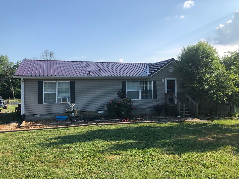 Manufactured home on permanent foundation with new metal roof. 5.62 Acres completely fenced with 36 x 36 4 stall barn that has electric and water, ready for horses. Creek at back of wooded area.