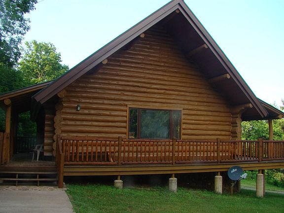 Great possibilities! Full log home with upper level master with bath, balcony & sky lights. Main floor unfinished-make it whatever you like-either main floor kitchen & dining room or two additional bedrooms. Main has beautiful custom bath with jacuzzi & two head walk in shower. Lower level has wood suspended ceiling, family room, kitchen, bedroom, bath with sauna & shower. Overlooks recreational park.
