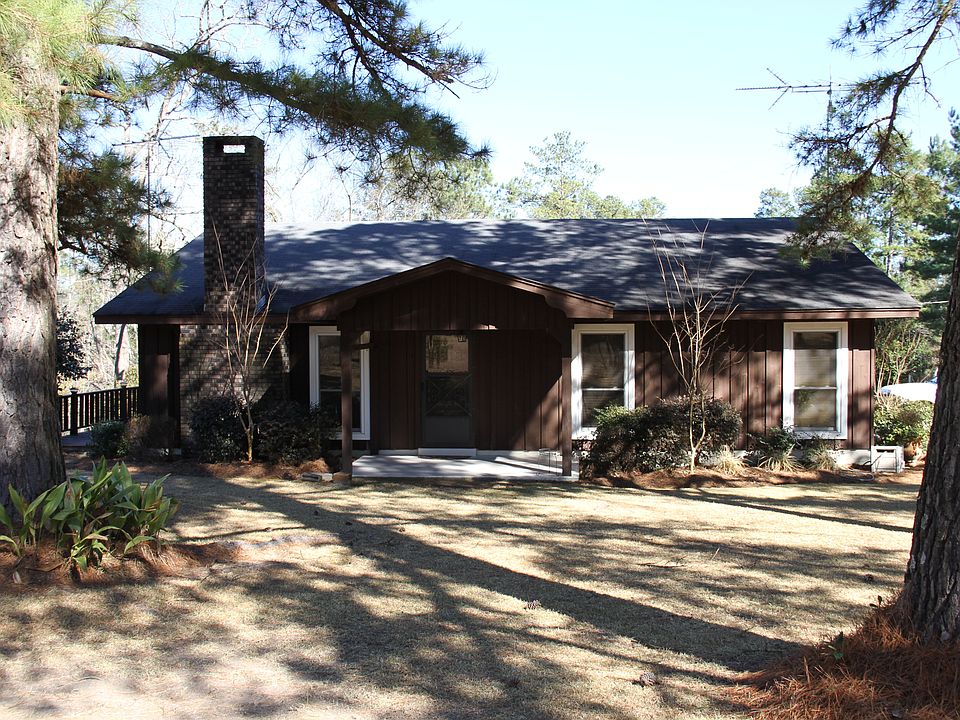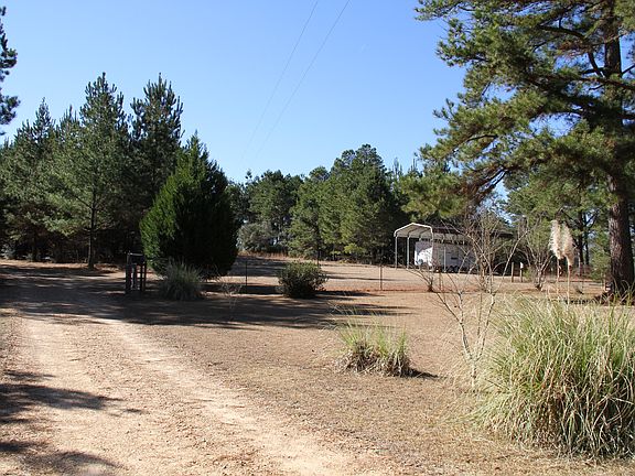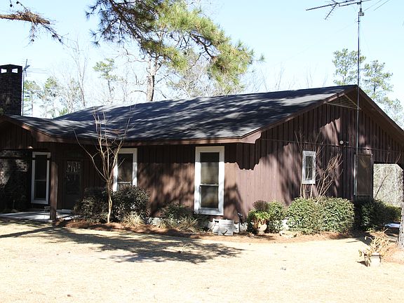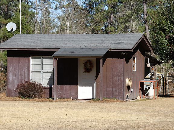 Secluded 2 bed 2 bath,approx 1400 sq ft heated, home sitting on approx 10 acres of wooded/planted pines. 1 acre stocked pond. Recently replaced windows and glassed doors with double pane and energy efficient. Central Air/heat pump, fireplace, deck, screened back porch and 1 car carport. Appliances include Smooth top stove (1 year old), dishwasher, and refrigerator. All electric. Approx 265 sq ft storage house with remodeled half bath, separate septic and and already ran gas lines for heat. 20x24 Steel Masters building/shop and Tractor shed.
