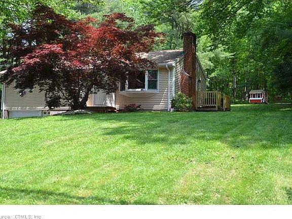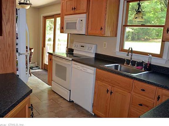 Recently updated, 3 bedroom Ranch in Tolland. 1000+ sq. ft. of one-level living. Beautiful hardwood floors. Updated white, 6-panel doors with matching trim throughout. New oak kitchen cabinetry with white appliances, tile floor, new counter tops and accent lighting. New tiled dining area, and common bath. Living room fireplace with wood stove and bay window. Newer siding, gutters and shed. Slider to rear deck. Off kitchen access to side deck.