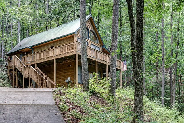 Unique Hilltop Retreat..Seclusion and splendor are yours in this striking home with lavish outdoor living spaces bordering United States Forest Lands.Spacious wraparound deck, built literally around mature trees, is total luxury: roast marshmallows and chat with guests at a high table, soak in the hot tub,or put your feet up on a sheltered lounge.Master suite has lots of room and a spacious bath, gorgeous kitchen with sparkling appliances and granite countertops, paired with a light, airy sitting room. Bonus bedroom, steps away, fits a work desk nicely.Full laundry,rustic decor,and a bevy of choices for family gatherings or just plain relaxation.It's all here " complete with bird's-eye.