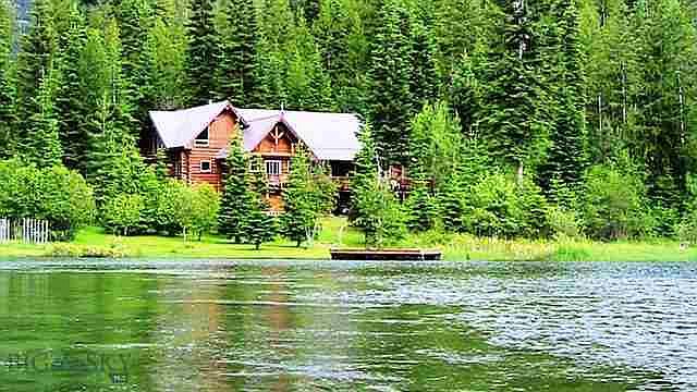 Craftsman log home is located at the junction of Bull Lake, Stanley Creek, & Lake Creek. One of a kind setting on 5.58 acres-232 ft. of Bull Lake frontage where 3 bodies of water meet. Most rooms offer a water view & mountains framing the lake can’t be built upon, ensuring your atmosphere doesn’t change. The custom log home has 2021 finished sq ft with the potential of 3407 sq ft & hosts many custom features. Master suite has private deck. Covered screened porch provides additional summer living space.