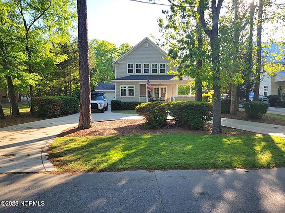 Don't miss this craftsman style cottage built in 2017 and located on E. Ohio St., one of the most private streets in downtown Southern Pines. The location offers easy access to Weymouth Woods for biking, hiking and riding trails with several trail heads just steps away. Walking distance to the Southern Pines shops, restaurants and breweries! Built by Jose Camina as a custom home, the house features finishes that you don't see in many builds today including wormy maple hardwood floors throughout the main level and owner's suite. The lower level offers a spacious kitchen which includes a cherry hardwood center island, granite counter tops, stainless steel appliances and custom cabinetry. The eat-in kitchen area is perfect for a large farm house table! The entrance offers a great drop zone area and the expansive living room is centered around a wood burning fireplace. Plantation shutters are featured throughout the house. Other design aspects of this home are 9 foot ceilings on the main level, detailed crown molding and rounded corners. The upstairs has three large bedrooms, two baths with granite counter tops, the laundry room and even a hallway nook that could be used for a computer desk. One of the largest back yards in Southern Pines, it is completely fenced-in and is perfect for children and dogs. A new addition to the back yard is the stone retaining wall and fire pit area. Also new to the back deck is a wood pergola. The mature landscaping offers an irrigation system and a circular concrete drive with access to the garage. SO much to see in this fabulous downtown Southern Pines cottage! Available for viewing beginning Saturday, April 29th.