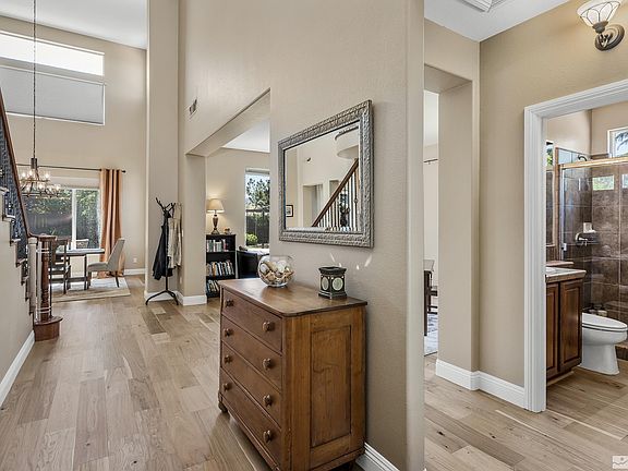 Beautiful 5 bedroom Curti Ranch home with private cul de sac location. Lush park-like landscaping and located on one of the largest lots in the neighborhood. Newly remodeled kitchen with upgraded quartz counters and herringbone pattern marble backsplash . Brand new waterproof engineered hardwood flooring throughout the main level with a 50 year warranty . New furnace recently installed. New Milgard windows, slider and screen door have been ordered and paid for in full ($15,000), installation to be performed by Reno Tahoe Glass on buyer's timeline. Other features include: Bedroom & full bath located on the first floor, custom two tone paint, custom light fixtures, custom fireplace mantel, top down/bottom-up Hunter Douglas blinds, paver patio & walkways, low maintenance pergola patio cover and raised garden beds. Very nicely cared for home within a short walk to Brown Elementary School. Convenient location near Reno's best shopping and quick access to freeway.