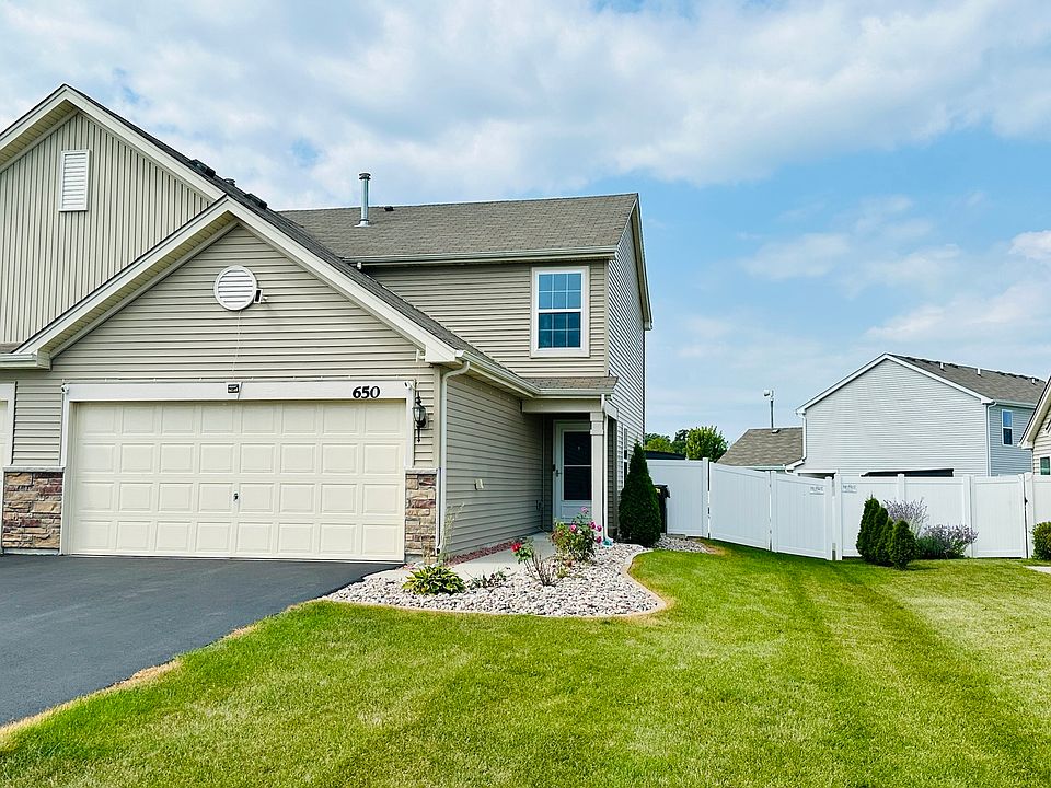 Welcome to your new home. Ready to move, this newer duplex offers 2 bedrooms, 2 1/2 bathrooms, 2-car garage, and the back yard is fully fenced and ready for your fur babies. For your convenience, the laundry is on the second floor. NO MONTHLY HOA. New carpet (2021), New fence (2023), New storm door (2024), New Shed (2024) and professional landscaping. Call now to schedule a showing!