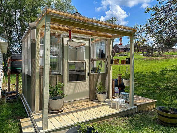 Outside the home features a gardeners dream space, with raised beds, a newly built greenhouse, additional storage building, and an abundance of fruit trees and landscaping to offer your own little slice of paradise.