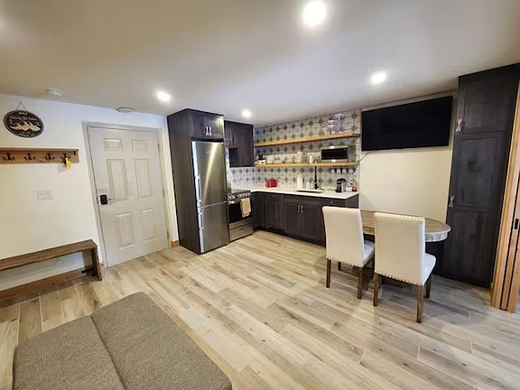 Newly remodeled first floor one bedroom condo within walking distance of all that Breckenridge has to offer. The kitchen is updated and includes a stove, vent fan, dishwasher, microwave, and quartz countertops. There is also a new washer and dryer in the unit. The bathroom has a walk in shower with sliding glass doors and a counter height vanity with storage. The condo is being offered furnished with newer high quality furniture, cookware, and dishes. All utilities and internet are included in rent. There is permitted parking for two cars. Available for summer and fall with flexible lease within the date range of April 1-November 30, minimum four month lease. Rent includes electric, water, and internet. Lease must end by November 30, 2025 with no option to extend