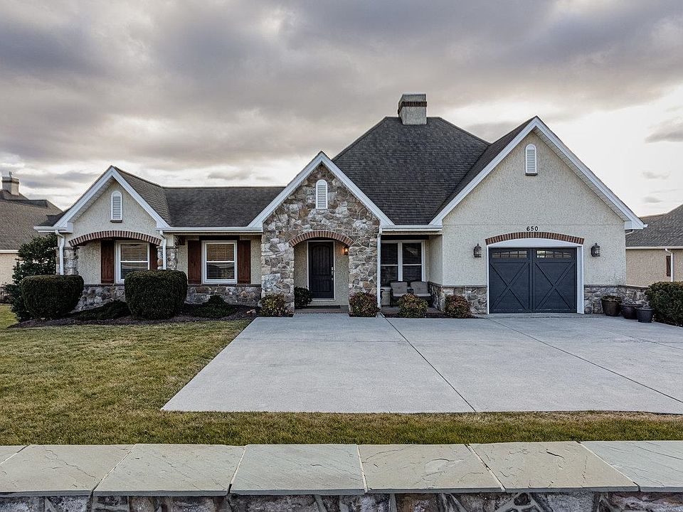 Come relax in the community of Heritage Estates adjacent to the Heritage Oaks Golf Course. The craftsmanship is French Design with stucco and stone remodeling. Enjoy the incredible views of the Massanutten and the Blue Ridge mountains. The main floor offers a master suite with soaking tub, main level laundry, kitchen with granite countertops with access to a lovely deck. The finished basement offers a flex space for guests with large rec room, wet bar, full bath, and patio off walkout basement. New hvac installed by excel 2023.
