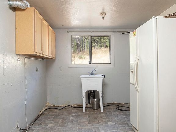 Visit this 1,092 sq ft two-story home nestled in a tranquil setting at the end of the road. The property is tucked away in a small canyon on 7.53 acres of land, providing privacy and backing up to BLM land for endless recreational activities. The home boasts a bright living room with vaulted ceilings and a cozy wood stove. Additionally, it features a large, finished detached garage, a large outbuilding, and a potential future home-site cut-in at the top of the property with stunning mountain views. The seller prefers to sell the home in its current as-is condition.