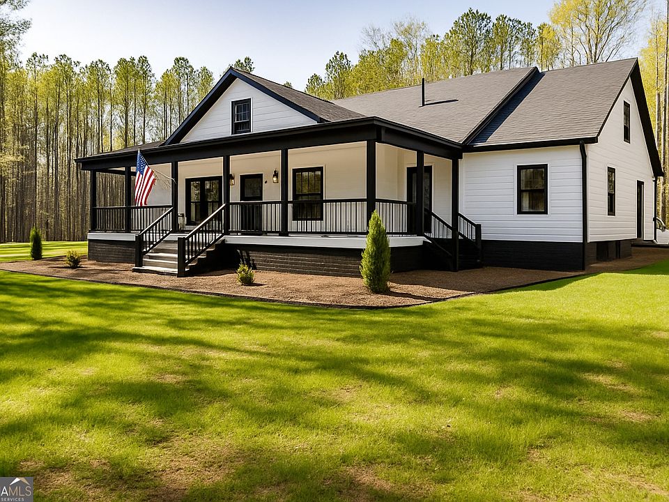 Seller will paint house exterior white or buyer's preferred color if buyer chooses. **5 acres with custom built barn!** This INCREDIBLE, custom built, LIKE NEW craftsman home has all the GORGEOUS detail you've been searching for and SO MUCH MORE! The vaulted ceilings in the living room are covered with beautiful tin, and the stone fireplace gives a grand feel to the entire room. With custom cabinets, quartz and butcherblock countertops, and brand-new stainless-steel appliances, the BEAUTIFUL kitchen opens into the large living and dining room. Matching custom cabinets continue into the separate wet bar. The owner spared no expense with this modern, luxurious home. There is a tankless water heater to heat the entire house and an additional tankless water heater just for the kitchen sink. This new home is modern while also having a sought-after rustic, farmhouse feel. In the owner's suite, you will find a large bedroom with a tastefully decorated bathroom complete with a beautiful tile shower and a large, freestanding bathtub. The HUGE owner's closet is as big as a bedroom! Also on the main floor, you will find another bedroom, a full bathroom, a beautiful half bath, and a large closet that has been reinforced to be a storm shelter. Upstairs, there is an additional bedroom and additional space to add two more bedrooms and a bathroom. Outside, the lovely, wrap-around front porch STUNS with incredible woodwork, producing loads of curb appeal and creating the perfect covered area to enjoy the beautiful southern days. There is plenty of storage between the attached garage and the carport. The outdoor kitchen and pergola are added touches that make this luxurious home even more special. No detail was overlooked and no expense was spared with this UNBELIEVABLE custom home! Call today to schedule a private showing!