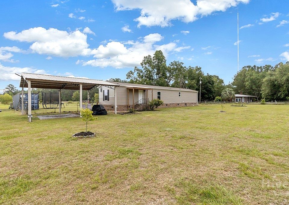 Convenient location to the Hyundai Metaplant and Daniel Defense Support Warehouse facilities. 3BR/2BA mobile home on a spacious 0.84-acre lot! The kitchen features a Samsung Smart Think fridge, multi-function stove/oven with air fry, island, and new dishwasher. Washer/dryer included. Enjoy movie nights with a living room projector and large screen—both stay! Backyard includes a fenced area with two gates, 2-vehicle carport, new rain gutters, front and back awnings, and a massive 40-ft, extra-tall heavy-duty shipping container for storage—secured with steel cable and 4-ft auger stakes. 220V exterior outlet is ready for a generator. Great location with a short drive to Statesboro, Pooler, Hinesville, and Savannah. Move-in ready with thoughtful upgrades and space inside and out!