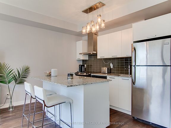 Live the downtown life at Six50 King. This stylish one-bedroom suite offers a functional, spacious layout with floor-to-ceiling windows that flood the space with natural light. Enjoy your morning coffee or evening glass of wine on the open balcony with CN Tower views. Featuring 9-ft exposed concrete ceilings, hardwood floors, and a sleek Italian Scavolini kitchen, this unit seamlessly blends modern design with urban charm. Step outside and you are moments from Farm Boy, STACKT Market, The Well, Balzac's Coffee, Impact Kitchen, and the city's best yoga, cycling, and fitness studios. When the sun sets, stroll to King Street's top restaurants and cocktail spots, Oretta, Gusto 101, Lavelle, and more. With TTC at your doorstep, boutique shops, and cafes all around, this boutique building offers executive concierge service and 24-hr security. Experience the ultimate downtown lifestyle in the heart of King West. One of Toronto's most vibrant and sought-after neighbourhoods!
